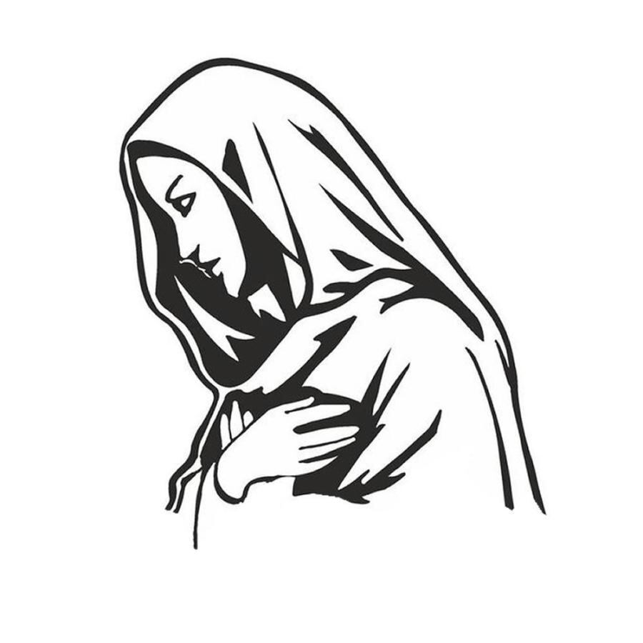 車 ステッカー マリア 神様 聖母 キリスト 宗教 給油口 おもしろ バイク かっこいい カー用品 かわいい シール おしゃれ 転写式 白 黒 st0080