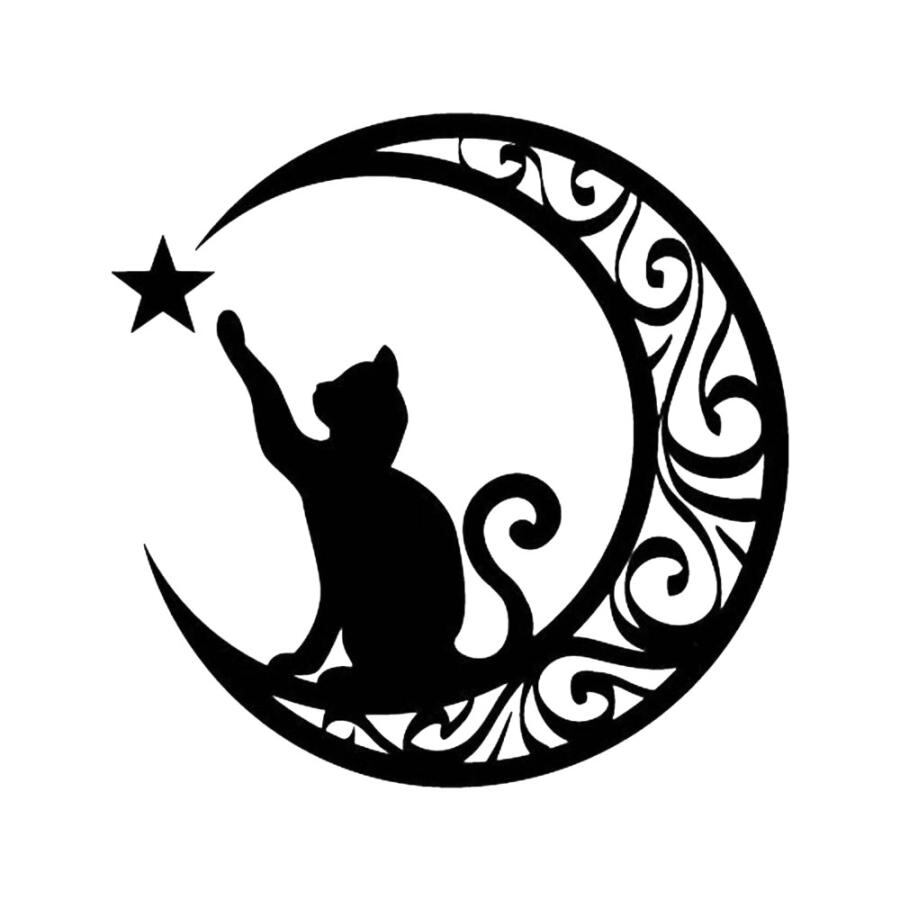 車 ステッカー 猫 キャット ネコ 愛猫 月 星給油口 おもしろ バイク かっこいい カー用品 かわいい シール おしゃれ 転写式 白 黒 st0171
