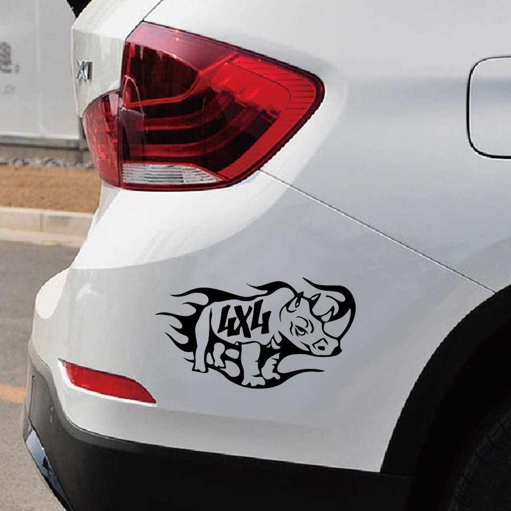 車 ステッカー サイ 四駆 炎 4×4 suv給油口 おもしろ バイク かっこいい カー用品 かわいい シール おしゃれ 転写式 白 黒 st0210