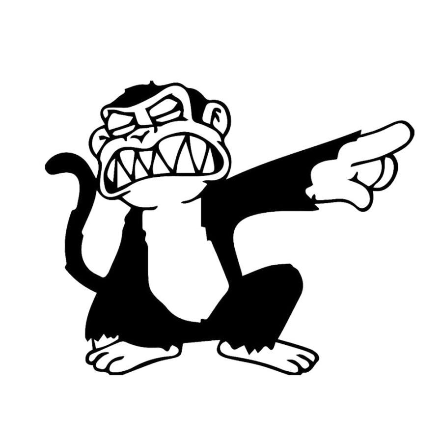 車 ステッカー サル 猿 指差し 怒る給油口 おもしろ バイク かっこいい カー用品 かわいい シール おしゃれ 転写式 白 黒 st0235
