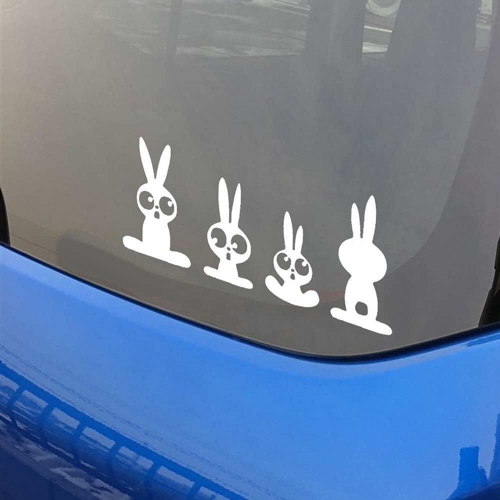 車 ステッカー うさぎ 4匹セット ラビット 家族 給油口 おもしろ バイク かっこいい カー用品 かわいい シール おしゃれ 転写式 白 黒 st0246
