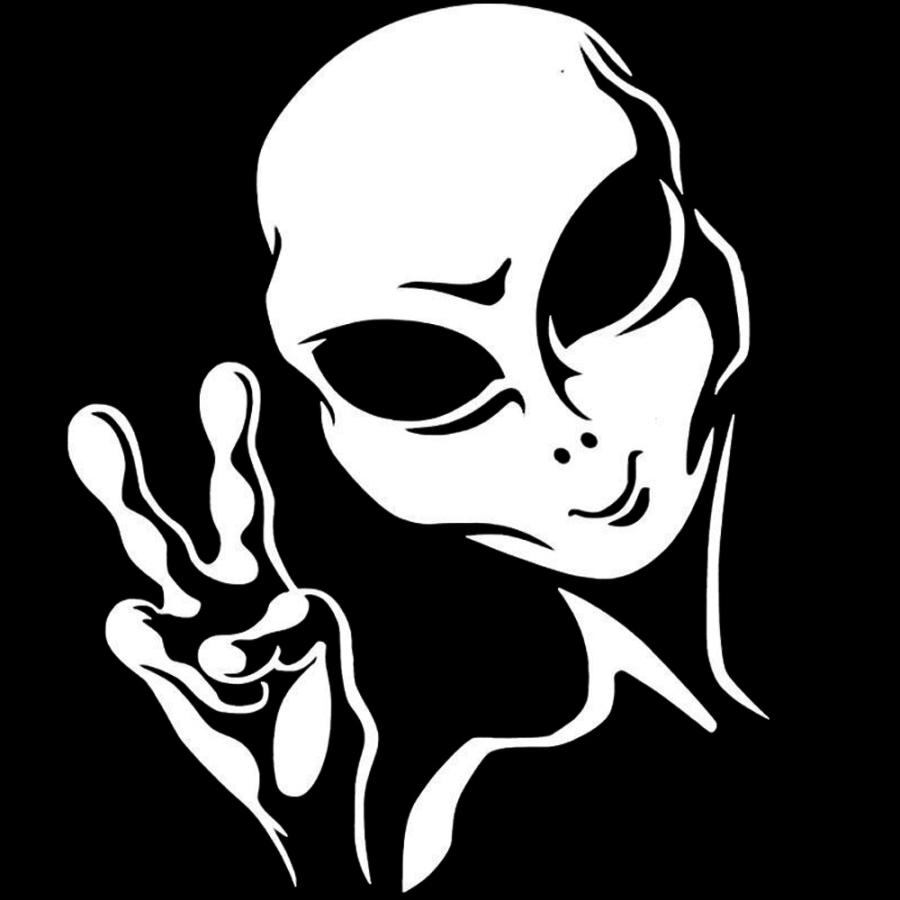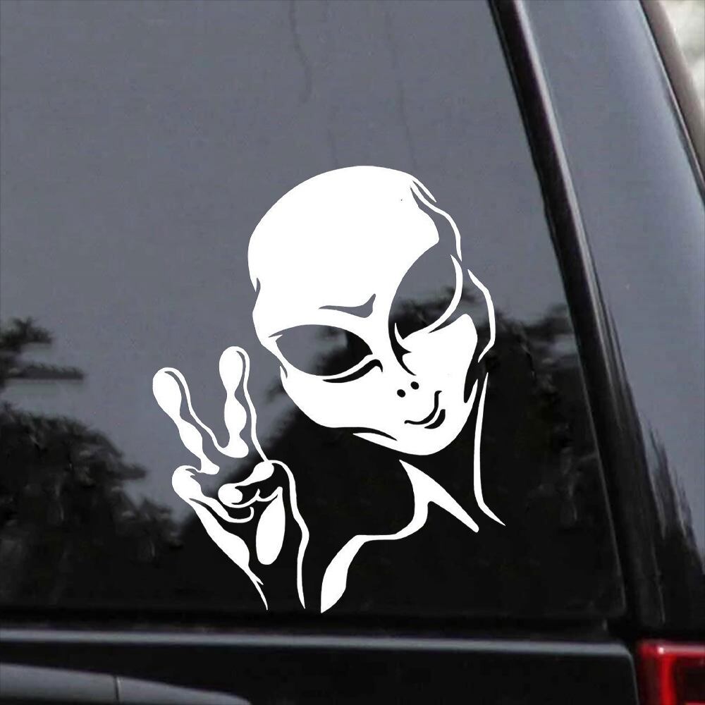 車 ステッカー エイリアン 宇宙人 ピース 怖い ホラー ガイコツ スカル ドクロ 髑髏 骸骨給油口 おもしろ カー用品 おしゃれ 転写式 白 黒 st0308