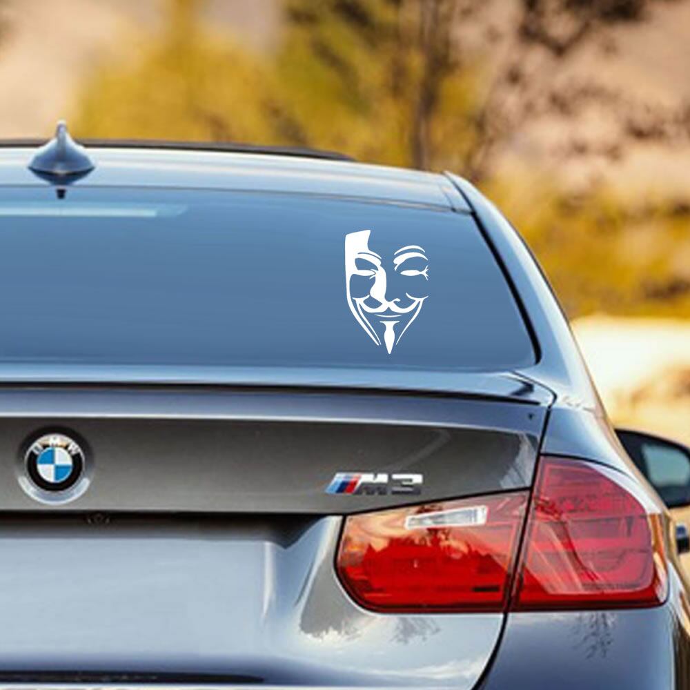 車 ステッカー アノニマス ハッカー 活動家 アクティビスト 顔 怖い給油口 おもしろ バイク かっこいい カー用品 おしゃれ 転写式 白 黒 st0353