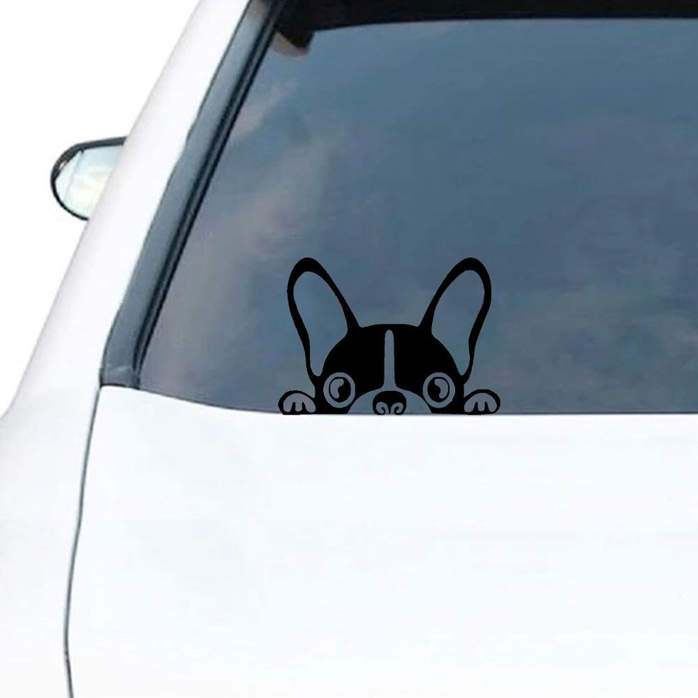 車 ステッカー 犬 イヌ 愛犬 ドッグ ボストンテリア 覗く給油口 おもしろ バイク かっこいい カー用品 かわいい シール おしゃれ 転写式 白 黒 st0358
