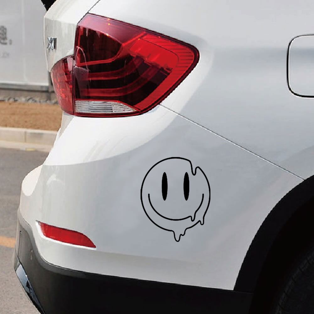 車 ステッカー ニコちゃん 顔 溶ける アート給油口 おもしろ バイク かっこいい カー用品 かわいい シール おしゃれ 転写式 白 黒 st0381