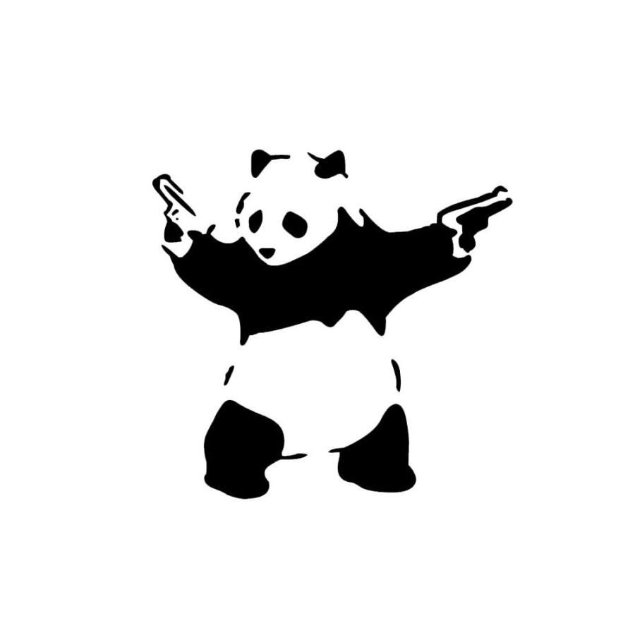 車 ステッカー パンダ 動物 白黒 銃 ピストル バンクシー 絵画 絵 有名 ガン給油口 おもしろ バイク かっこいい カー用品 おしゃれ 転写式 白 黒 st0427