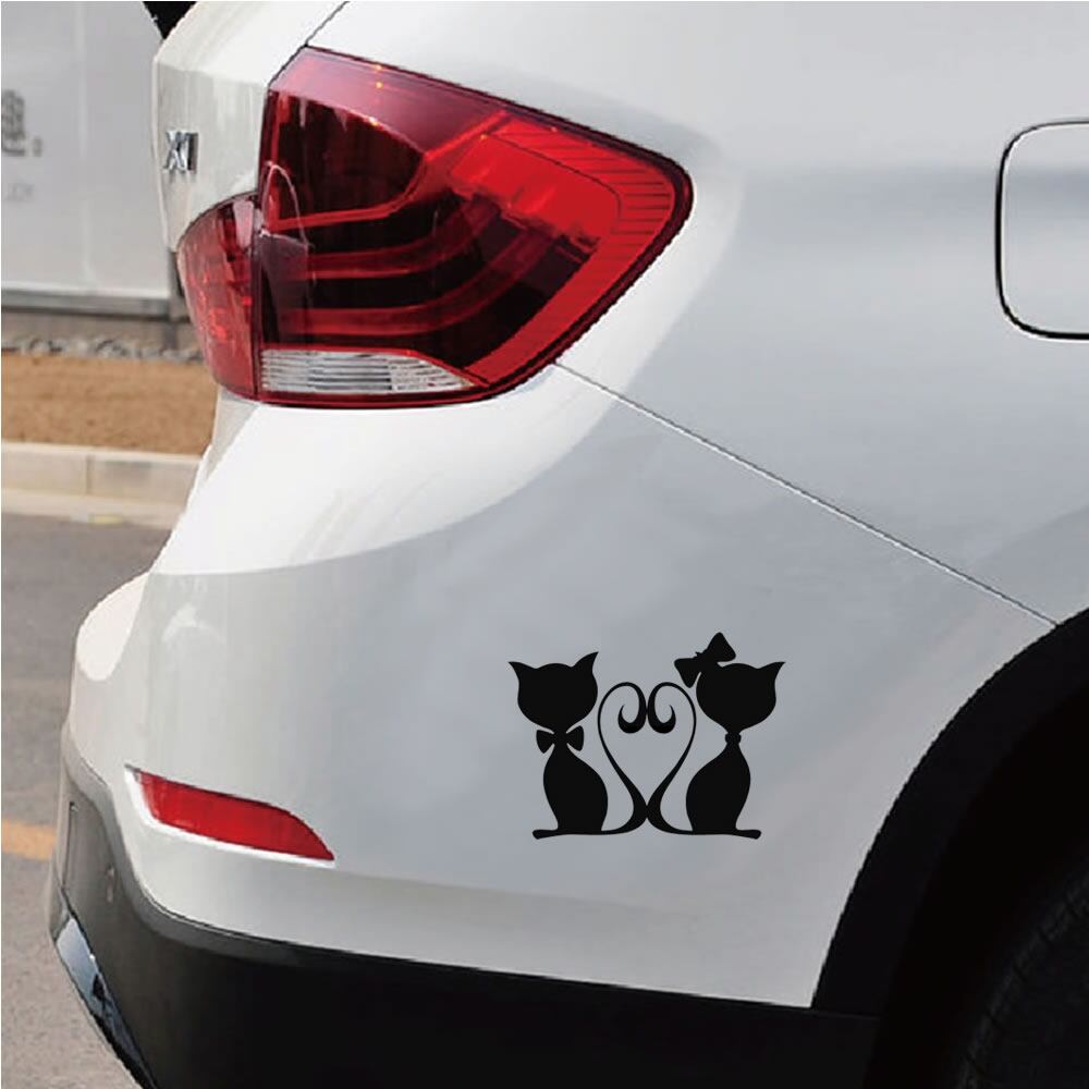 車 ステッカー 猫 ネコ 愛猫 キャット カップル ハート リボン ラブラブ給油口 おもしろ バイク かっこいい カー用品 おしゃれ 転写式 白 黒 st0443