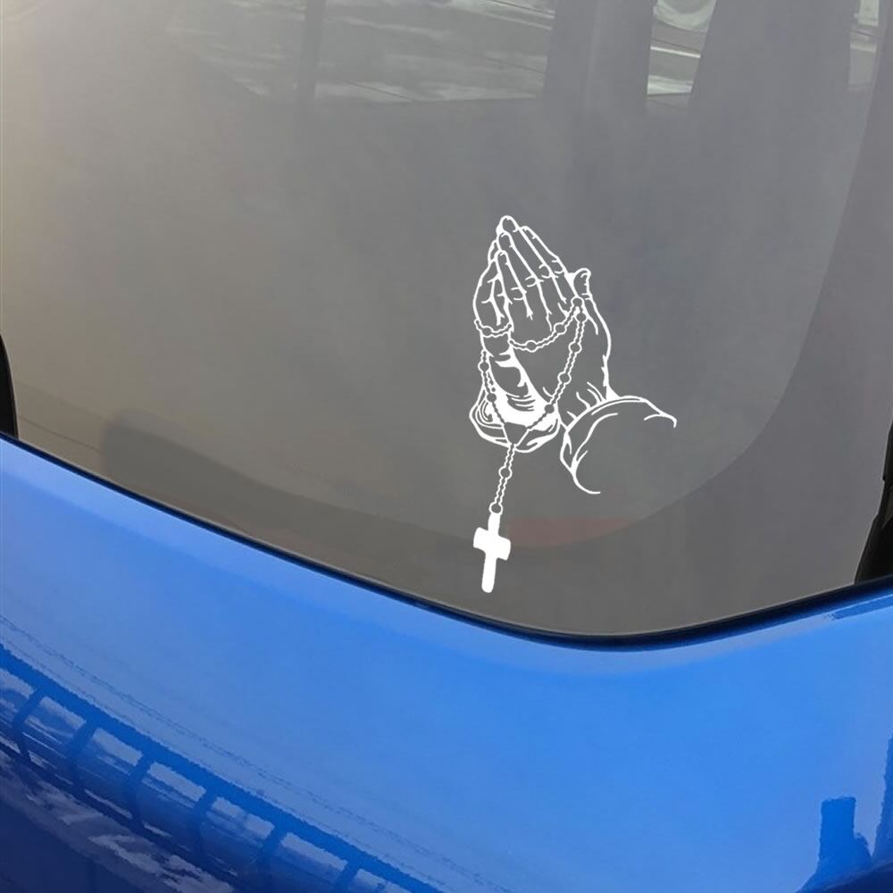 車 ステッカー キリスト 神様 イエス 聖書 合掌 ロザリオ給油口 おもしろ バイク かっこいい カー用品 おしゃれ 転写式 白 黒 st0679