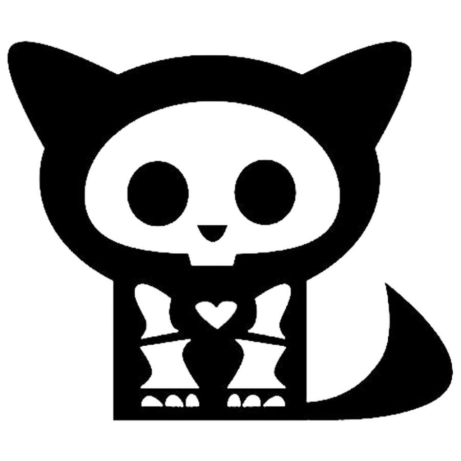 車 ステッカー ガイコツ スカル ドクロ 髑髏 骸骨 キャット 猫 ネコ 愛猫 斧給油口 おもしろ バイク かっこいい カー用品 おしゃれ 転写式 黒 st0863