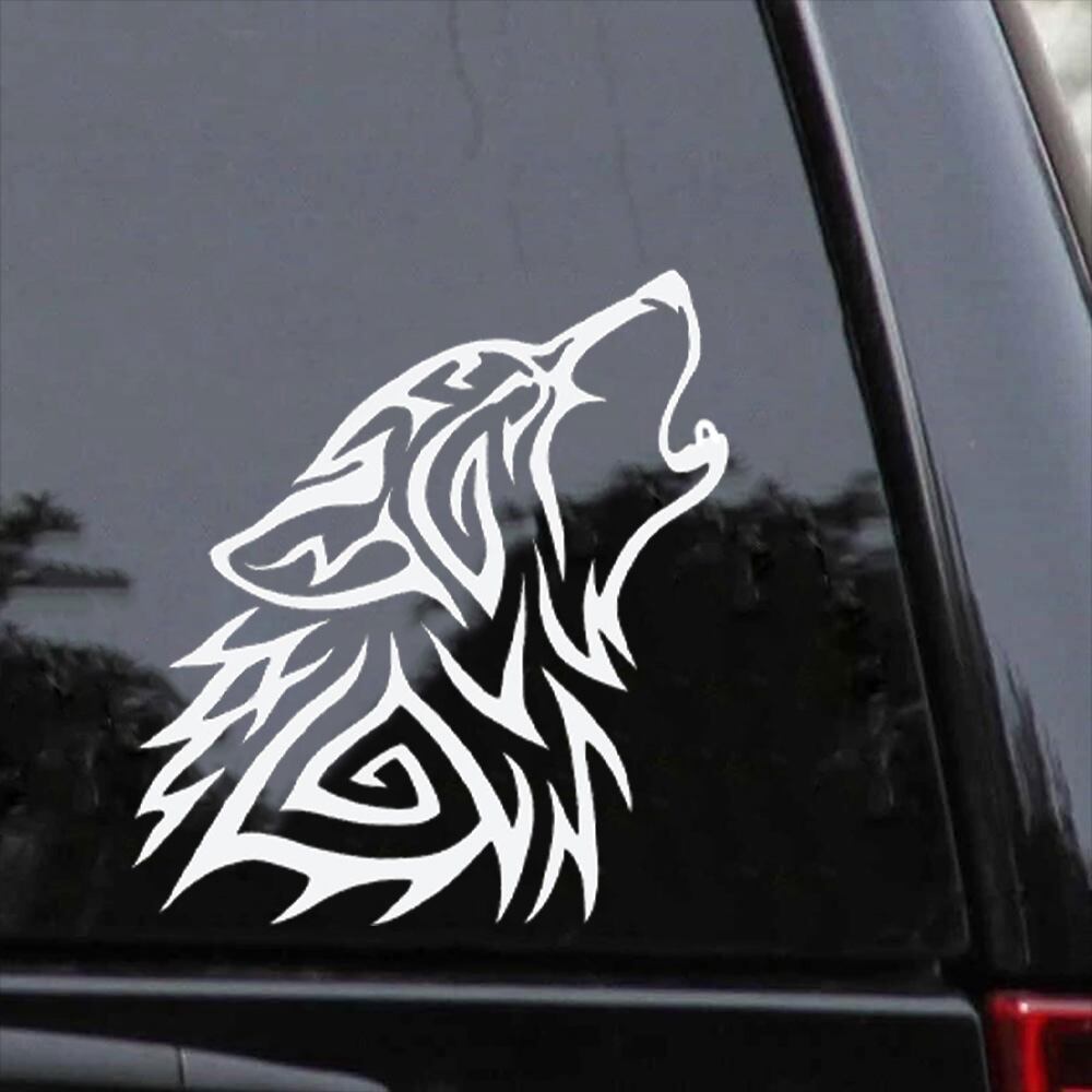 車 ステッカー トライバル 狼 オオカミ 遠吠え 給油口 おもしろ バイク かっこいい カー用品 おしゃれ 転写式 白 st0870