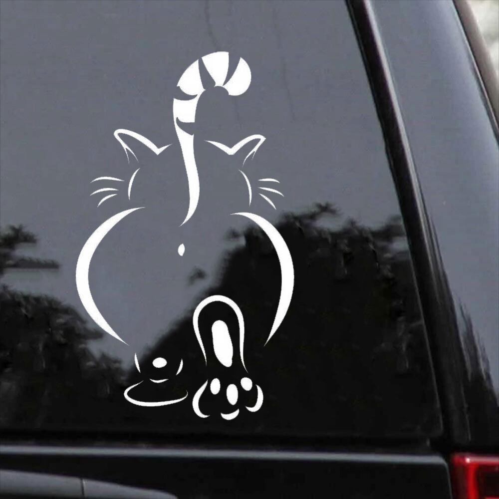 車 ステッカー キャット 猫 ネコ お尻 愛猫 後ろ向き 給油口 おもしろ バイク かっこいい カー用品 おしゃれ 転写式 白 st0896