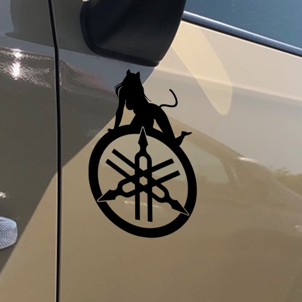 車 ステッカー ヤマハ セクシー YAMAHA バイク 単車 二輪車 女性 給油口 おもしろ バイク かっこいい カー用品 おしゃれ 転写式 黒 st0924