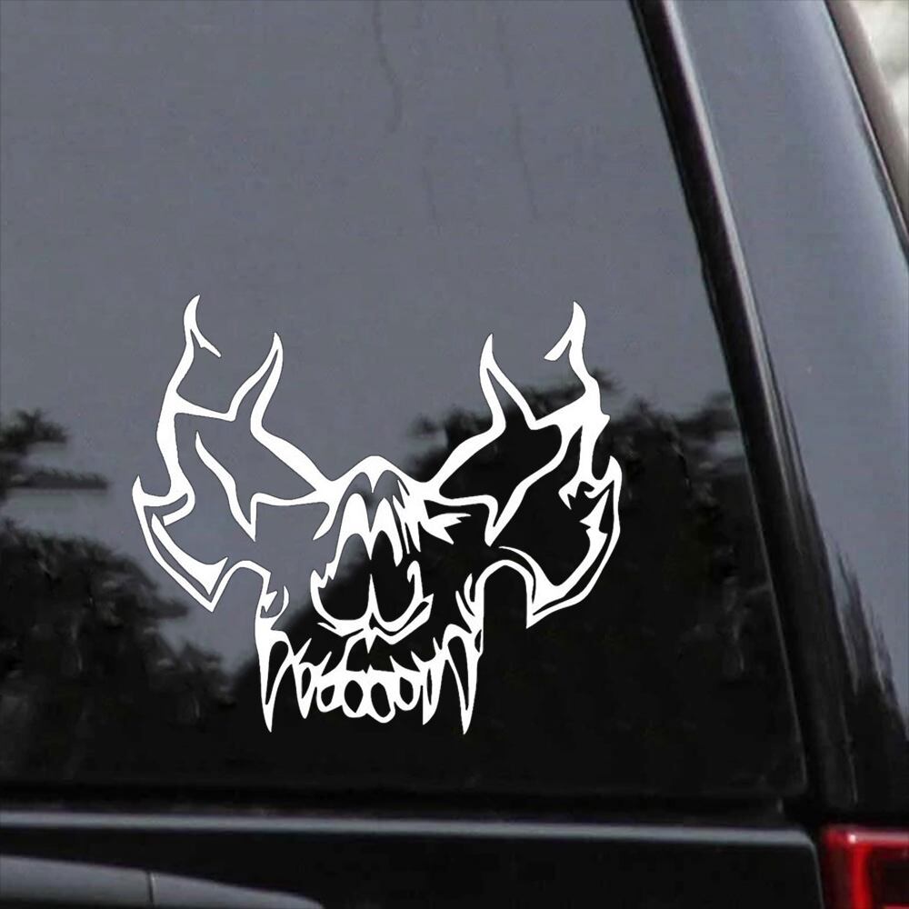 車 ステッカー 男 ホラー 骸骨 牙 悪魔 給油口 おもしろ バイク かっこいい カー用品 かわいい シール おしゃれ 転写式 白 st1032