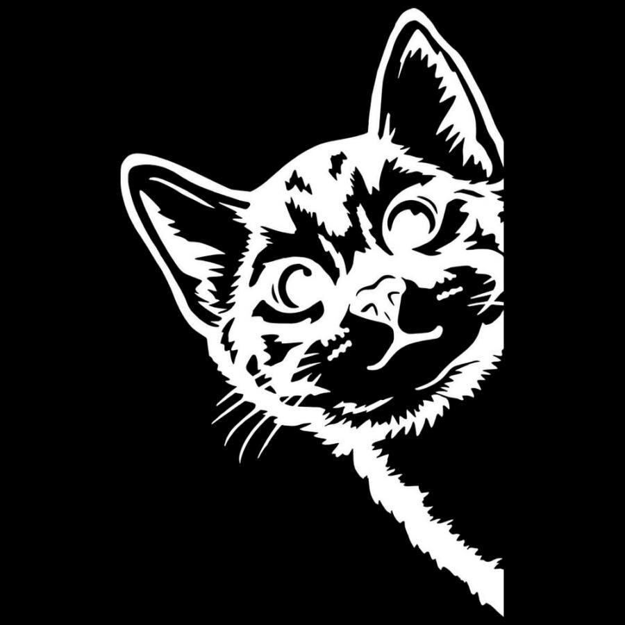 車 ステッカー 猫 動物 ネコ 癒され 覗く 覗き 給油口 おもしろ バイク かっこいい カー用品 かわいい シール おしゃれ 転写式 白 st1036