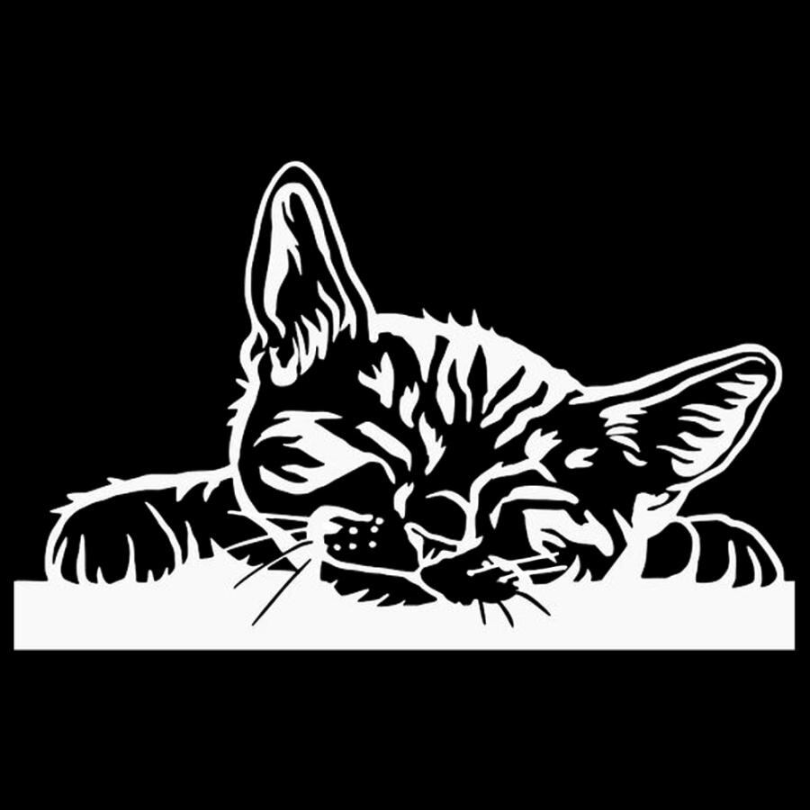 車 ステッカー 猫 動物 ネコ 癒され 寝る 睡眠 給油口 おもしろ バイク かっこいい カー用品 かわいい シール おしゃれ 転写式 白 st1038