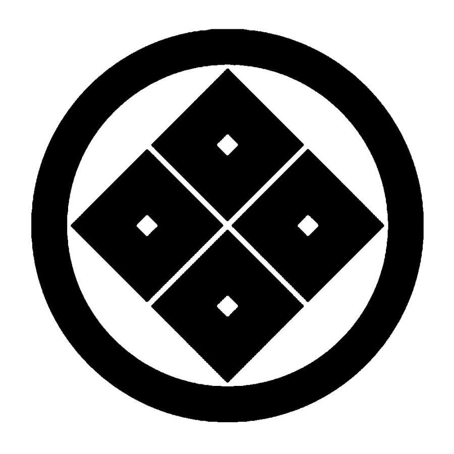 車 ステッカー 丸に隅立て四つ目 宇多源氏 流佐々木氏 家紋 マーク 紋章 給油口 かっこいい カー用品 転写式 白 黒 st1130