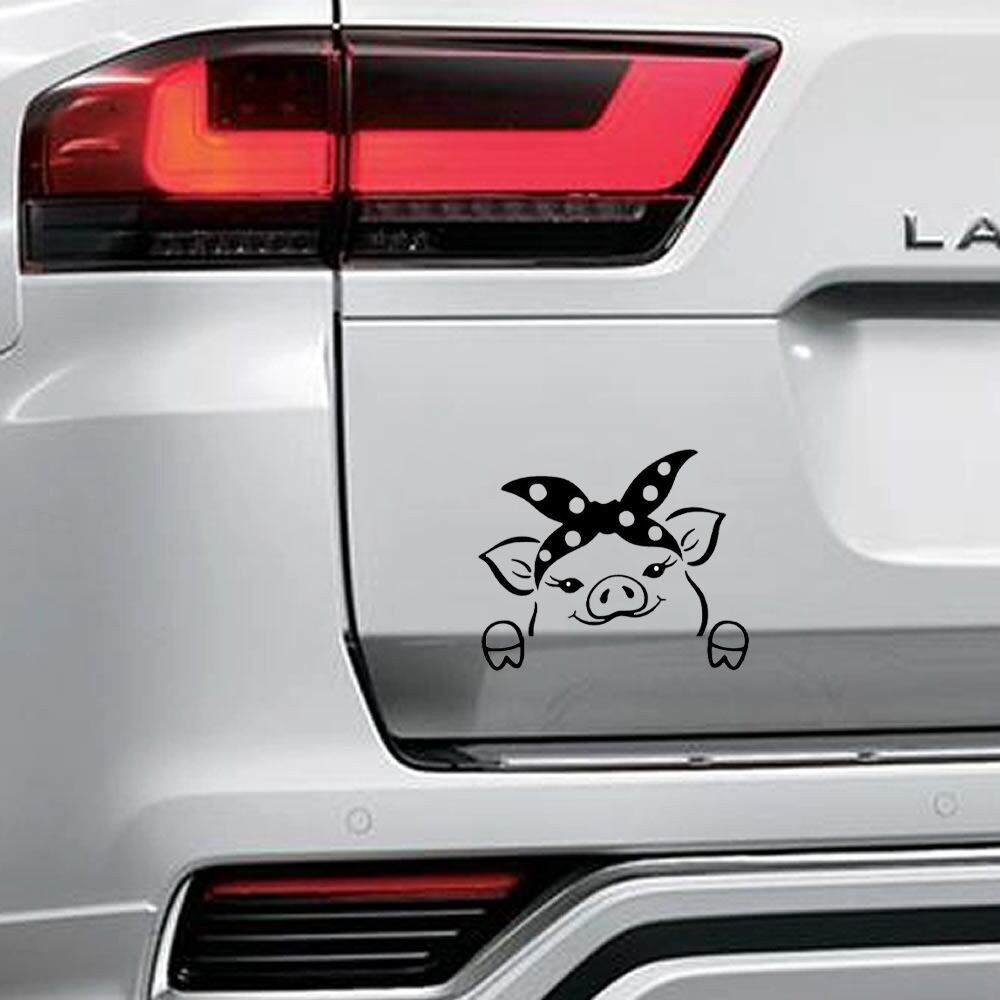 車 ステッカー 豚 ブタ リボン 水玉 給油口 おもしろ かっこいい カー用品 シール おしゃれ 転写式 白 黒 st1270