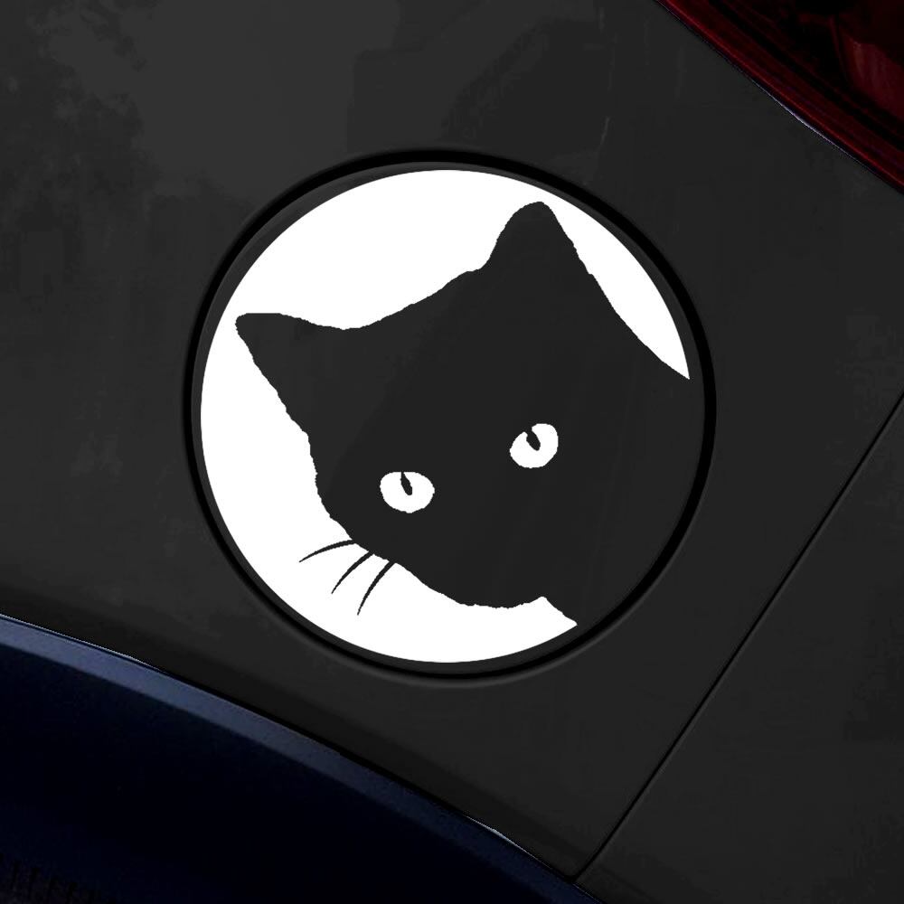車 ステッカー 猫 キャット 覗く 給油口 おもしろ かっこいい カー用品 シール おしゃれ 転写式 白 黒 st1323