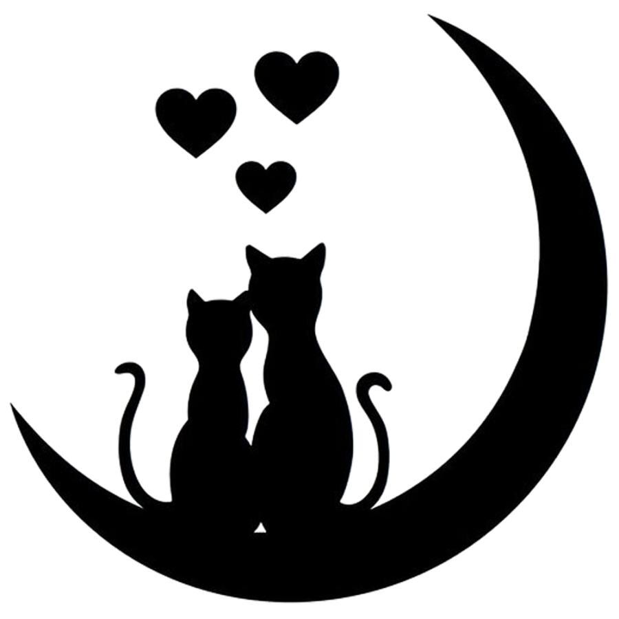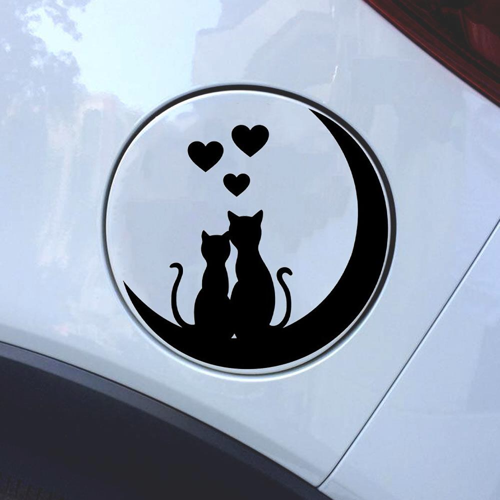 車 ステッカー 猫 動物 月 ハート カップル 夫婦 ツキ ネコ 癒され 給油口 かっこいい カー用品 かわいい シール おしゃれ 転写式 白 黒 st1390
