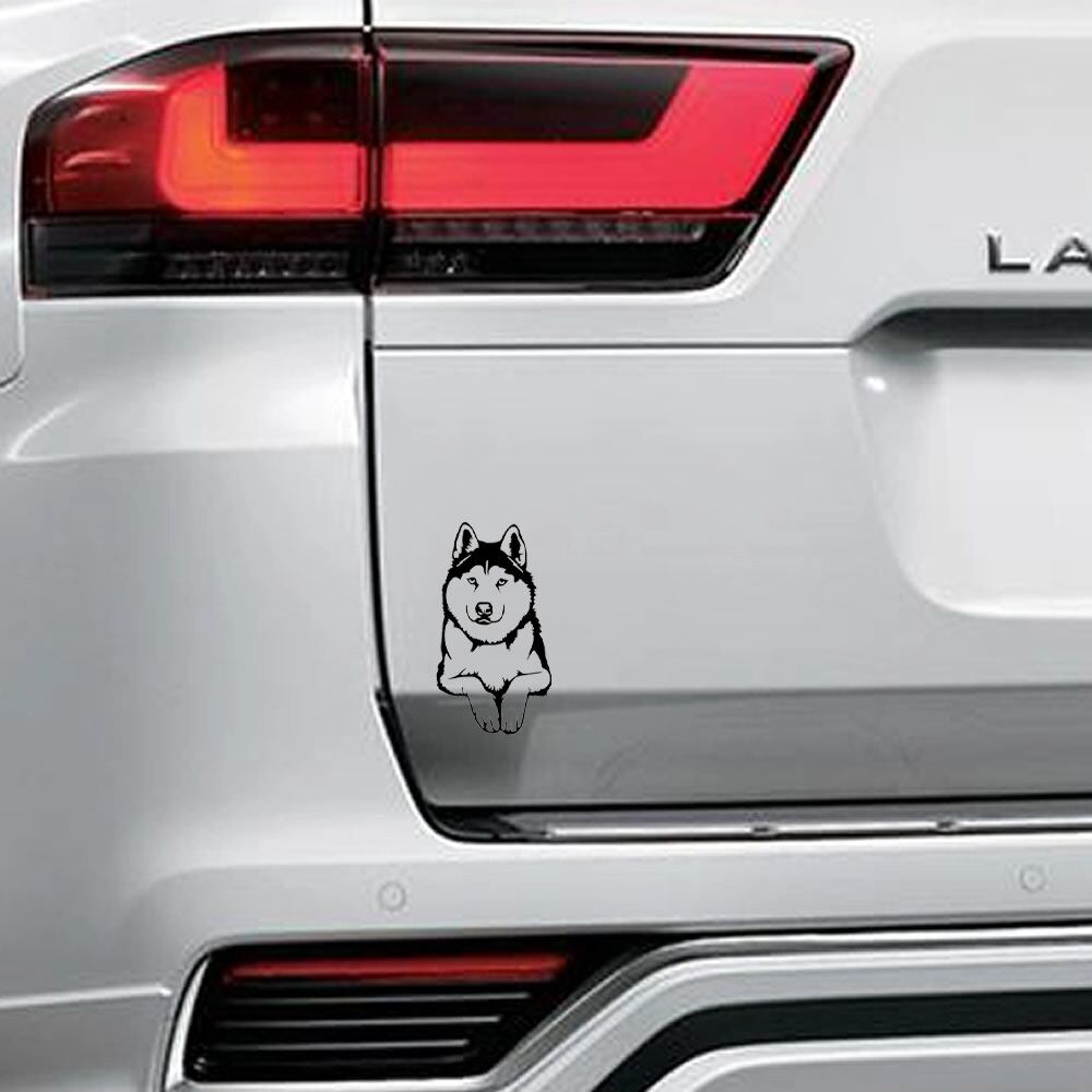 車 ステッカー 犬 シベリアンハスキー 愛犬 ドッグ 給油口 おもしろ バイク かっこいい カー用品 かわいい シール おしゃれ 転写式 白 黒 st1396