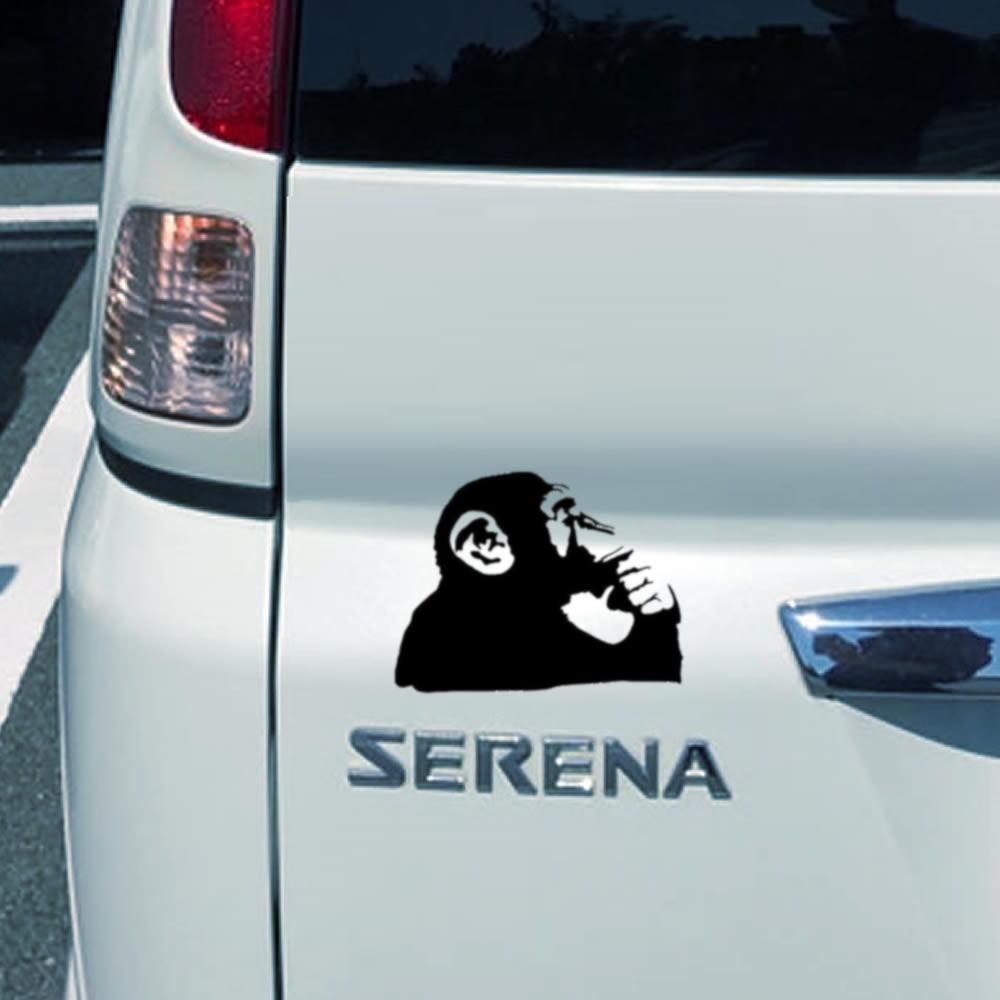 車 ステッカー 猿 さる チンパンジー 考える アート 壁画 バンクシー 給油口 かっこいい カー用品 おしゃれ 転写式 st1590