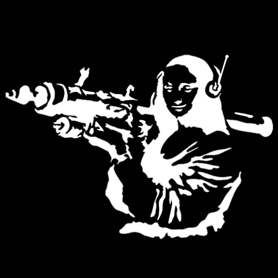 車 ステッカー バンクシー モナリザ 絵画 ロケットランチャー 武器 給油口 おもしろ おしゃれ 転写式 st1619