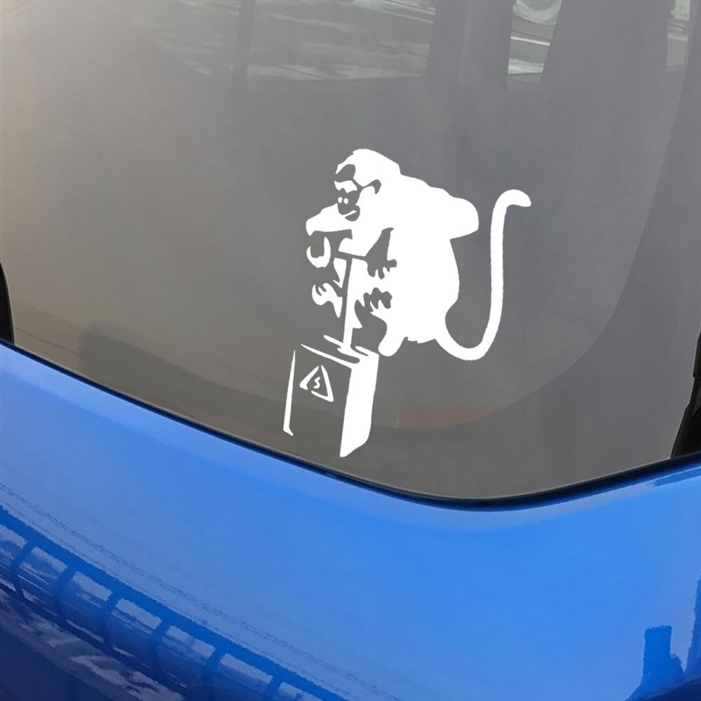 車 ステッカー バンクシー チンパンジー 爆弾 爆破 リモコン 岩 給油口 おもしろ バイク カー用品 おしゃれ 転写式 st1621