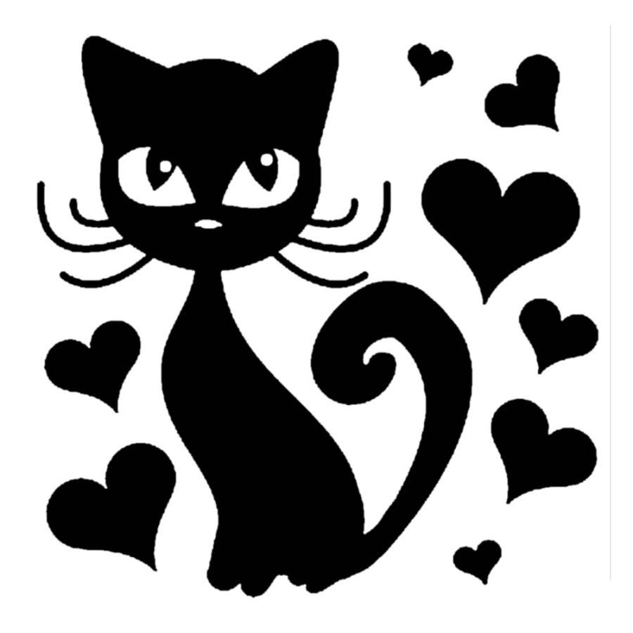 車 ステッカー 猫 ハート キャット 給油口 おもしろ バイク かっこいい カー用品 かわいい シール おしゃれ 転写式 黒 st1636