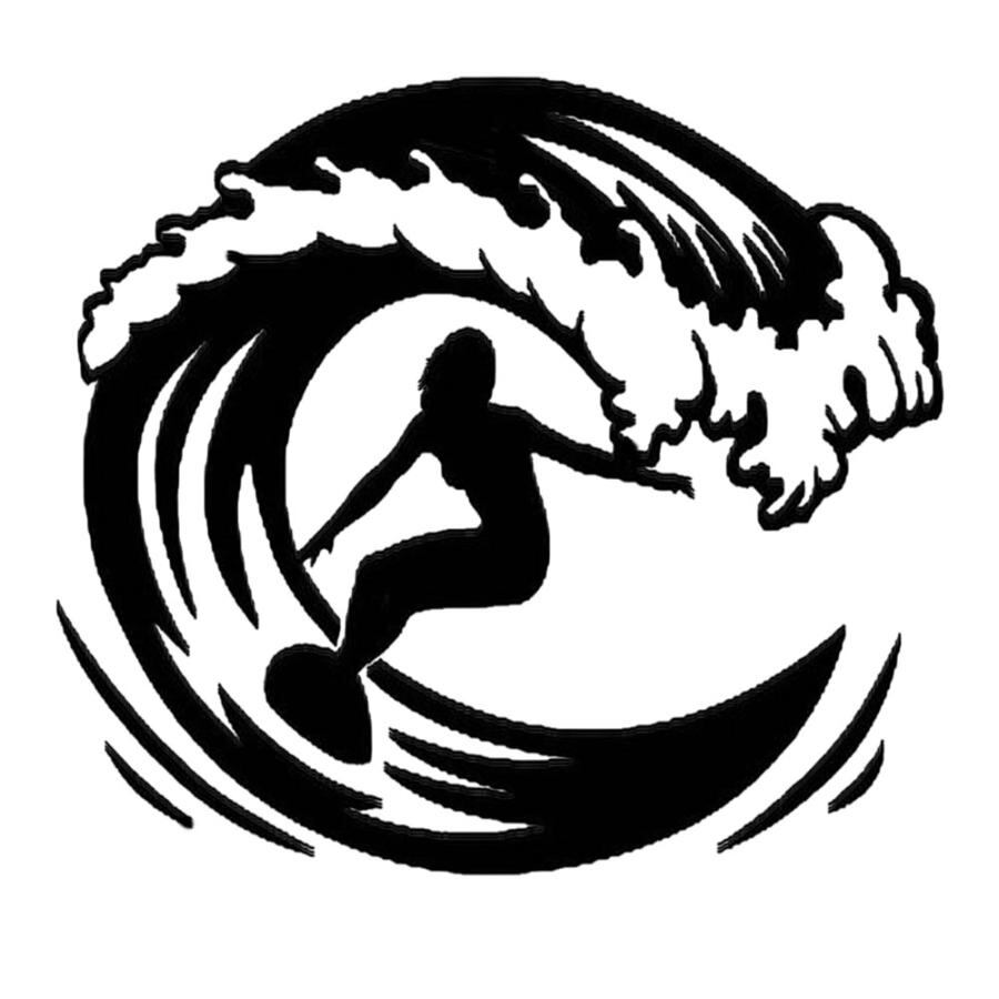 車 ステッカー サーフィン 波乗り 女性 ボード 海 給油口 おもしろ バイク かっこいい カー用品 かわいい シール おしゃれ 転写式 黒 st1664