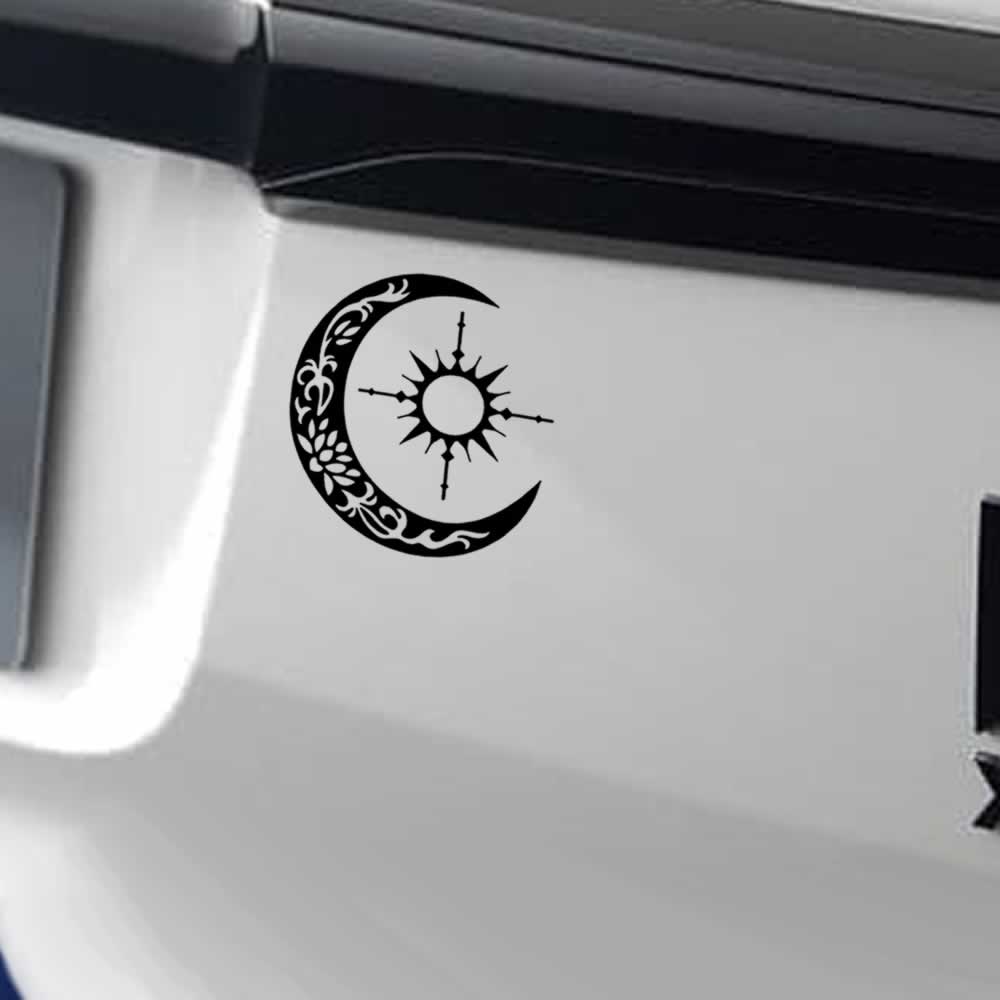車 ステッカー 太陽 サン 月 星 自然 エンブレム 給油口 おもしろ バイク かっこいい カー用品 かわいい シール おしゃれ 転写式 黒 st1938